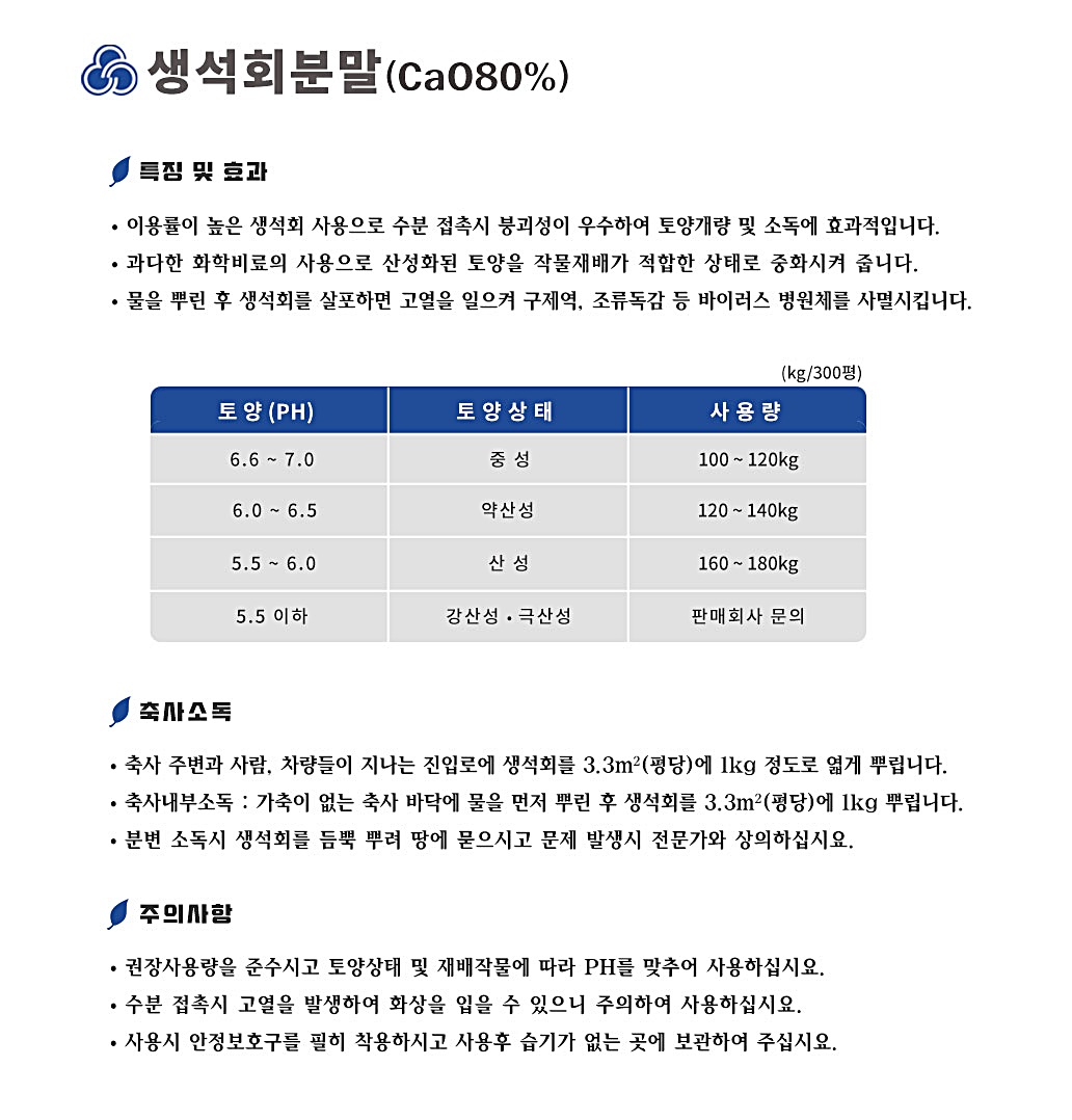 #분말형태 #생석회 #CaO80%